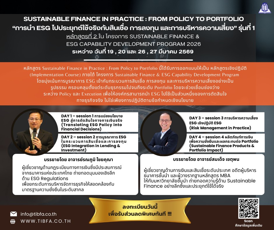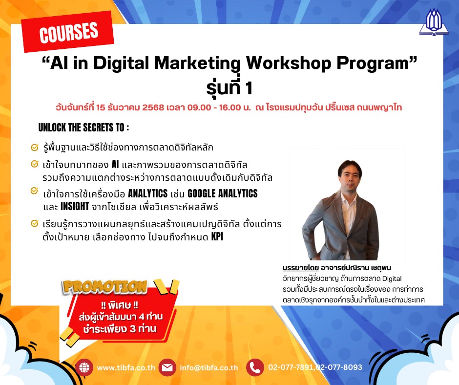 อัปสกิลเดือนสิงหาคมนี้กับหลักสูตรเด่นจากTIBFA! โอกาสดีของผู้บริหารและมืออาชีพในสายการเงิน การธนาคาร และธุรกิจ ที่ไม่ควรพลาด!