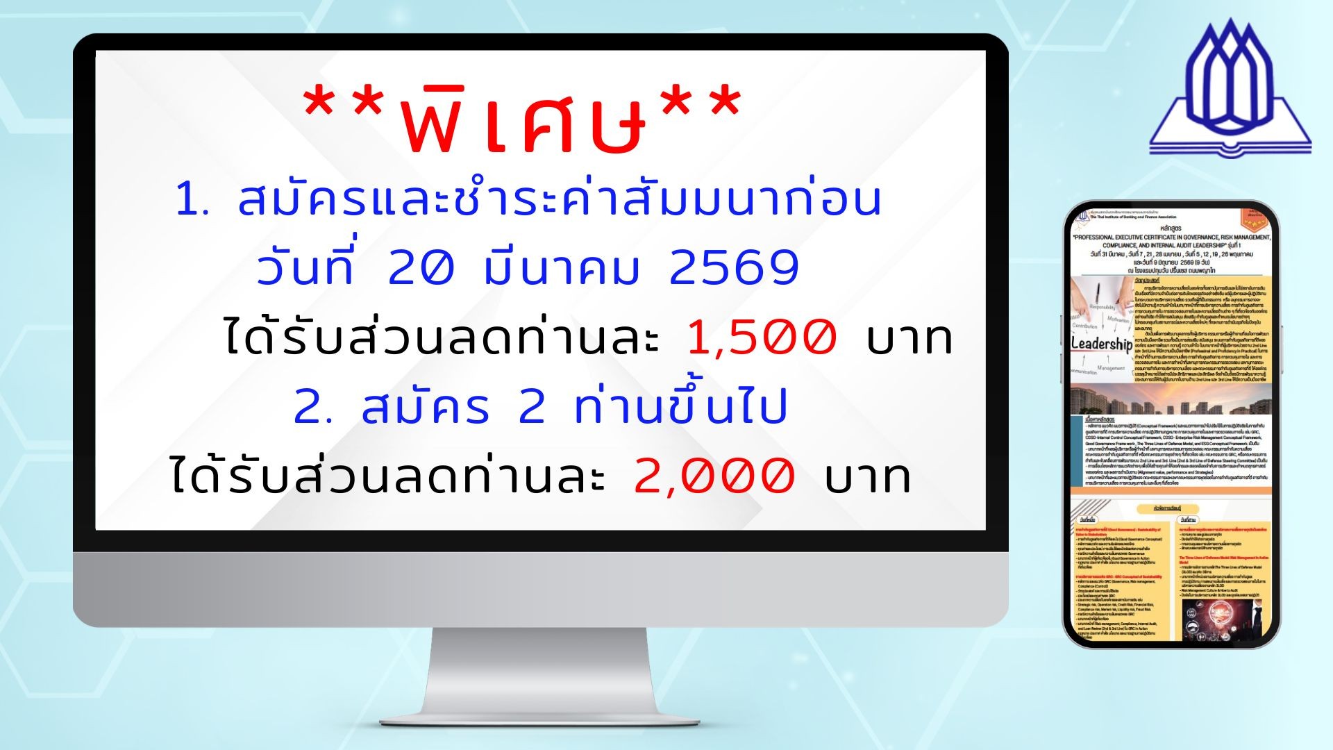 พิเศษ ** สมัครและชำระค่าสัมมนาก่อน วันที่ 20 มีนาคม 2569 ได้รับส่วนลด 1,500 บาท **
